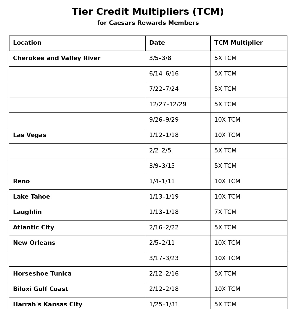 Always confirm at Caesar’s Rewards and SWIPE your card at the Kiosk). Find a trip in the list below that includes one or more of these dates to participate.